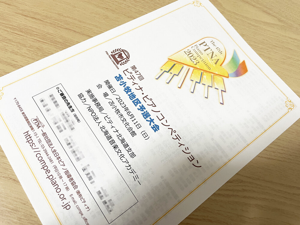 今年の北日本1・2地区予選ですが、参加した生徒さんに聞いた話しやウエブサイト発表のタイミングを見ますと地区によって違ったりしているかもしれませんが、掲示発表はせずにピティナ・ウエブサイトでの発表で、そのウエブサイトでの発表より先に採点票交付の際に各自の結果がわかるようになっているかと思います(重ね重ね、地区によってはそうでないところもあると思いますが)。もう地区予選も日程的には半分以上は終わってますのでご存知の方も多いとは思いますが、採点票交付の際、交付用封筒の中には予選優秀賞の方は盾(所によっては手渡し)と「本選に進出した方へ」というご案内紙、予選奨励賞の方には賞状、北海道支部賞の方にも賞状が入っておりますので、採点票交付の時間にすぐ取りに行くのが、最も早くご自分の結果を知ることができることになります・・・多分、きっと。ちなみに去年まで「北海道支部奨励賞」という名称でしたが今年からは「北海道支部賞」と変更になってます。その理由と意図はワタクシは知りませんが、でもこれまで地区予選奨励賞と北海道支部奨励賞と奨励賞が2つだったのでちょっとややこしい感じもしたり、文字数も少し多かったので、個人的にはスッキリして良かったんじゃないかな?と思います。